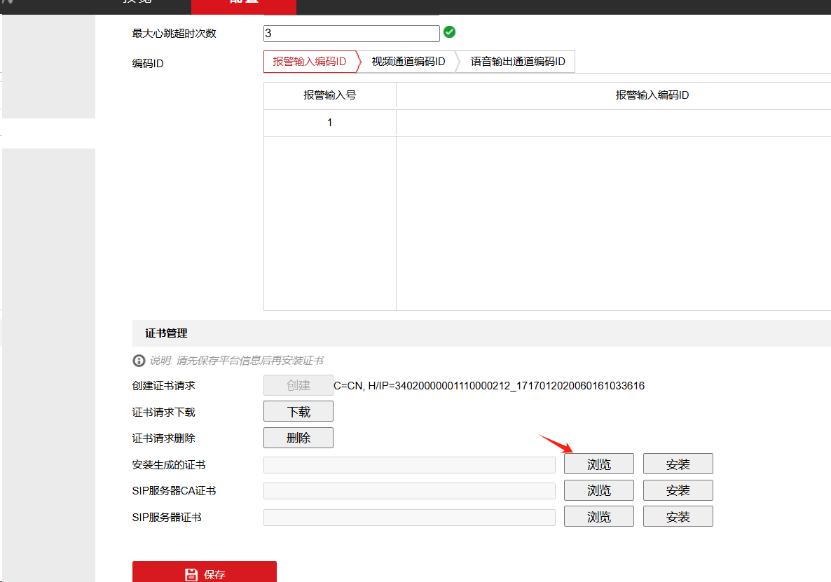 1)点击【向上级联】,将上级平台的信息填写到这里: