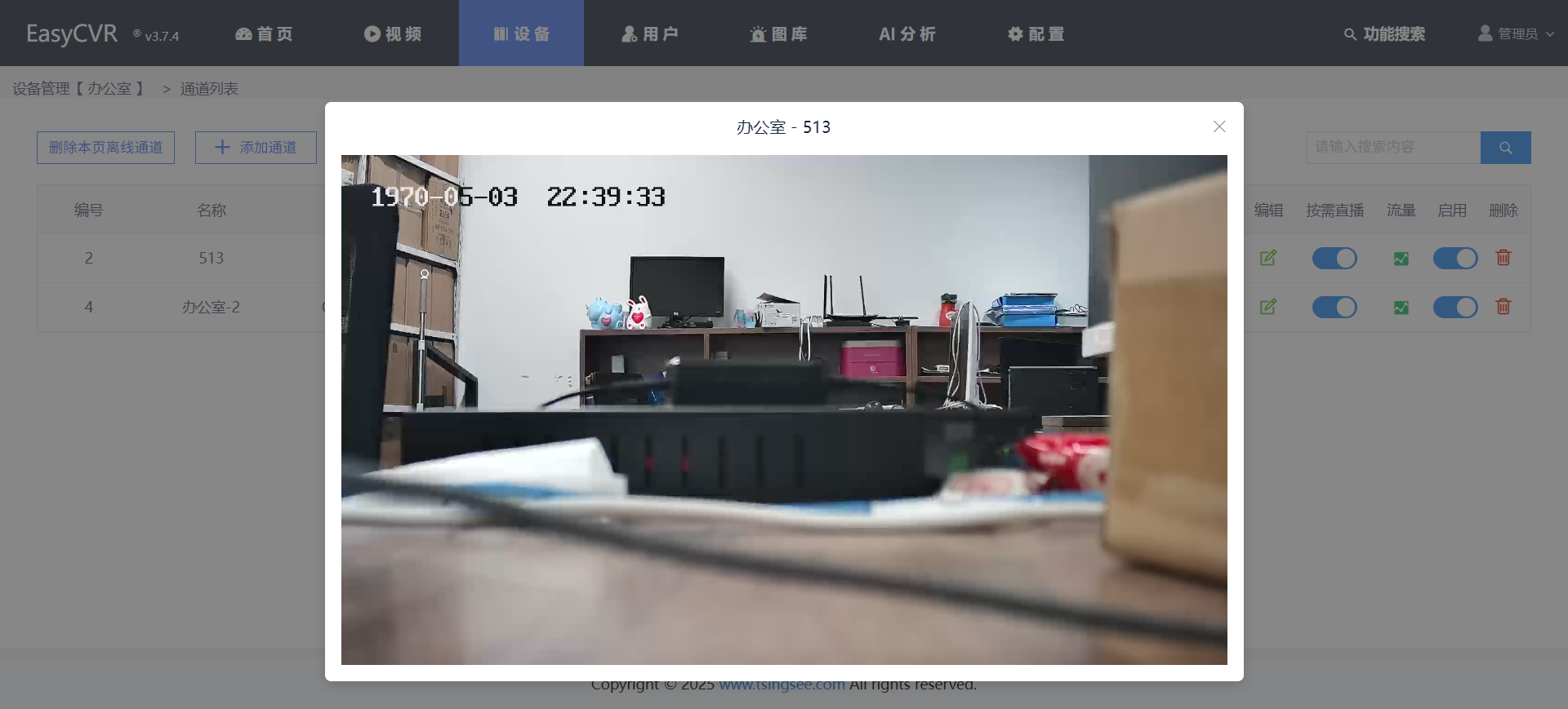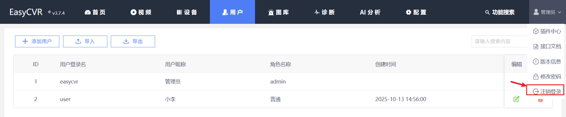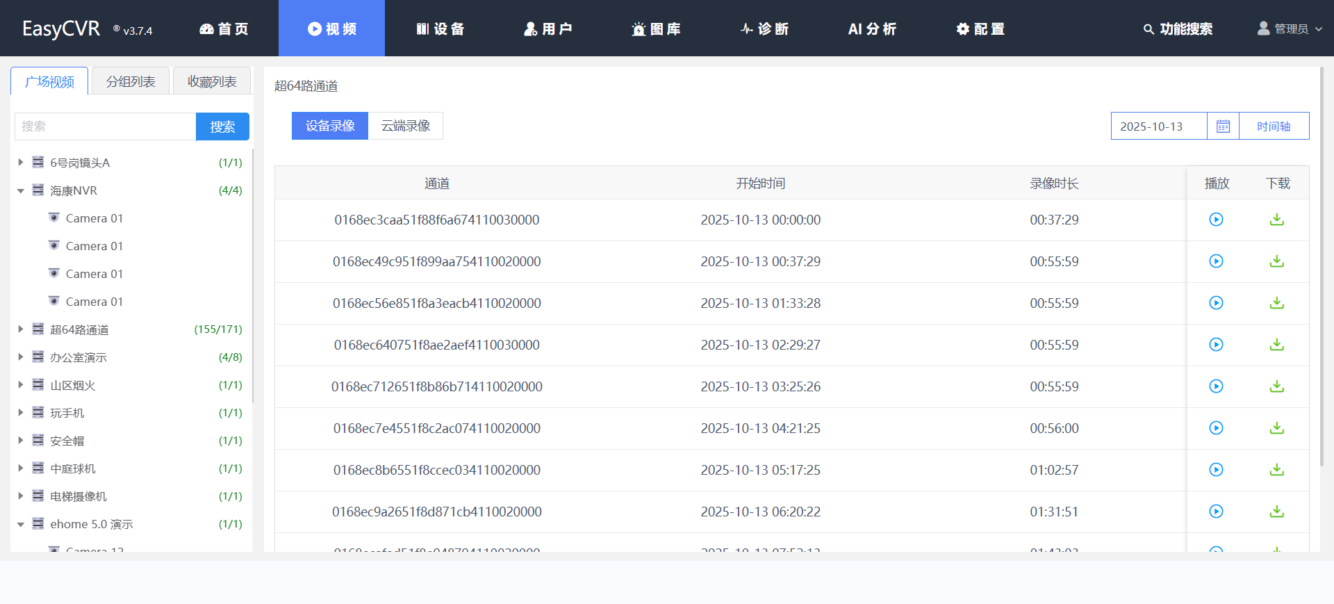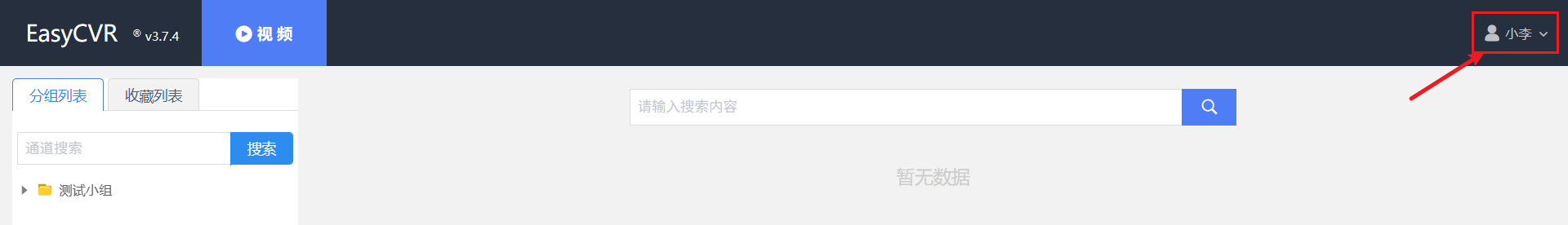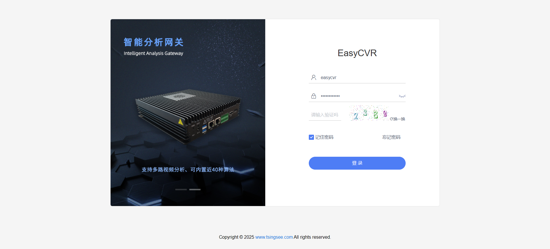 默认初始管理员用户名密码为 easycvr/easycvr,登录成功如下图: