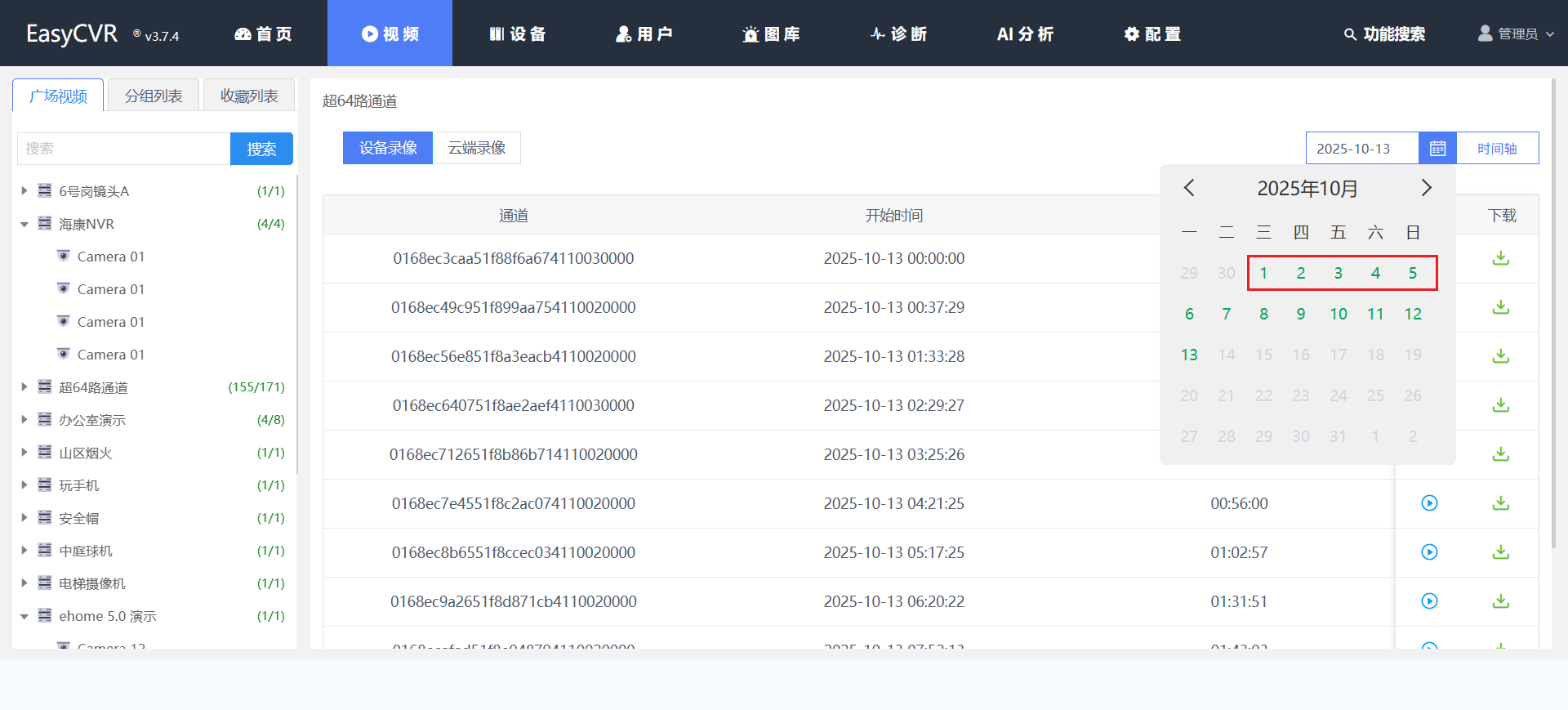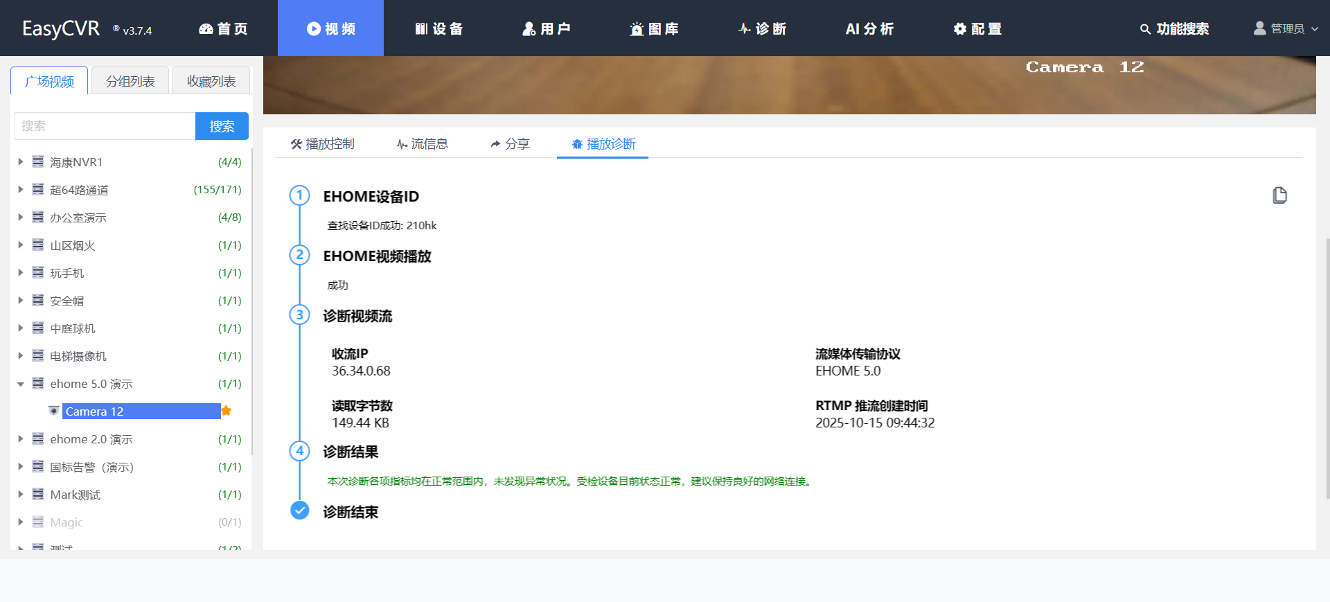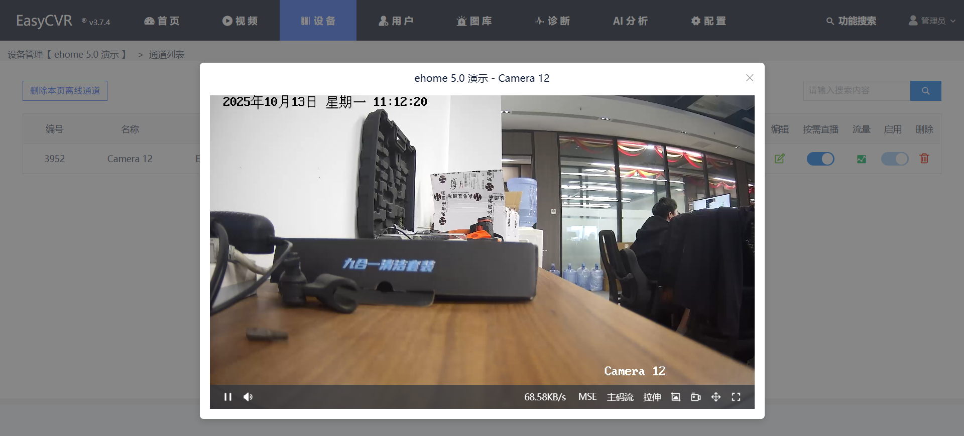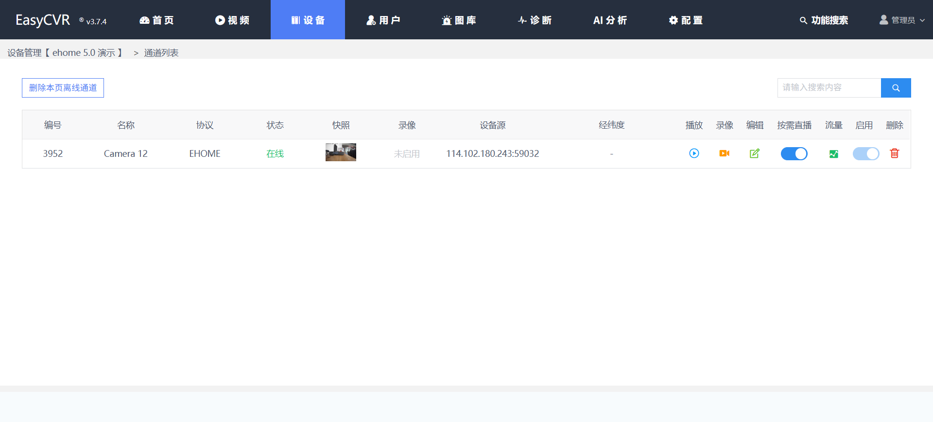 默认初始管理员用户名密码为 easycvr/easycvr,登录成功如下图: