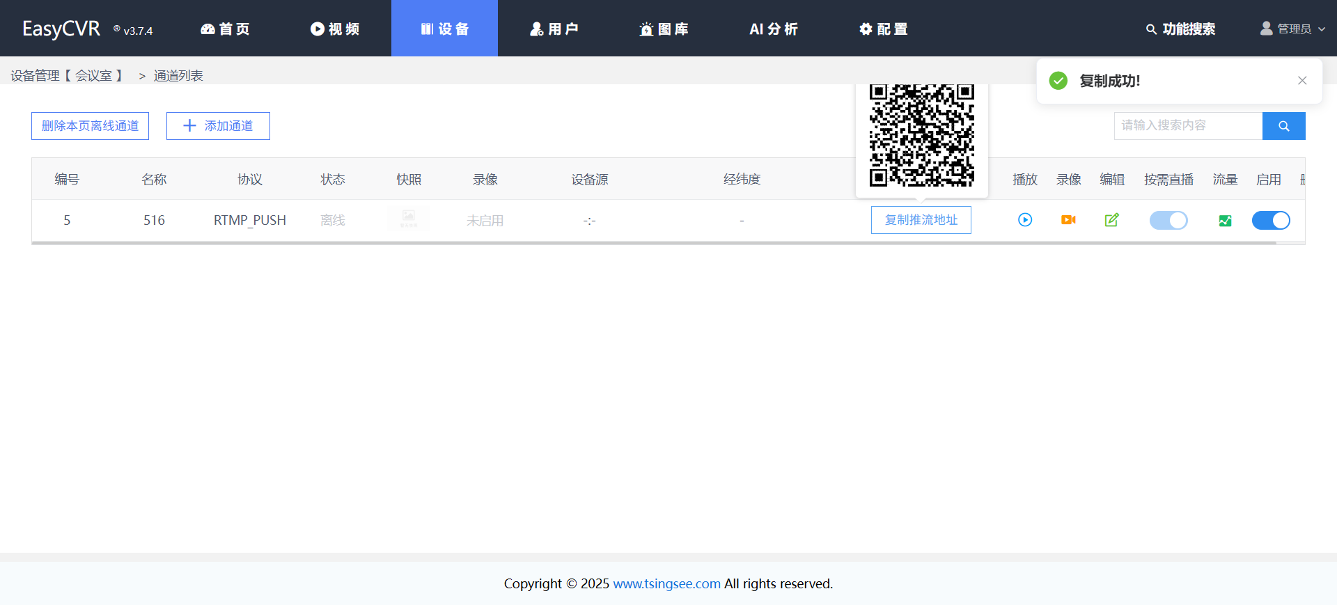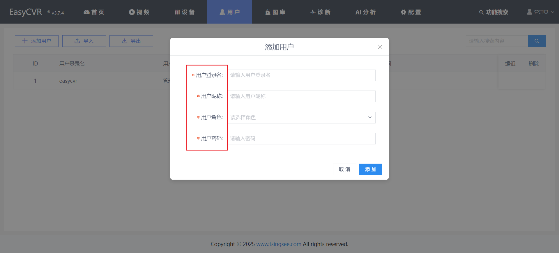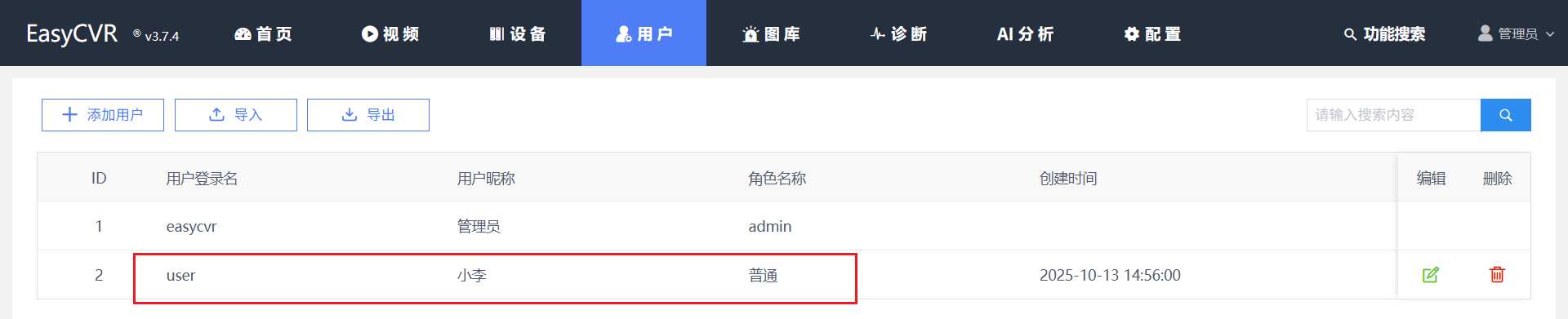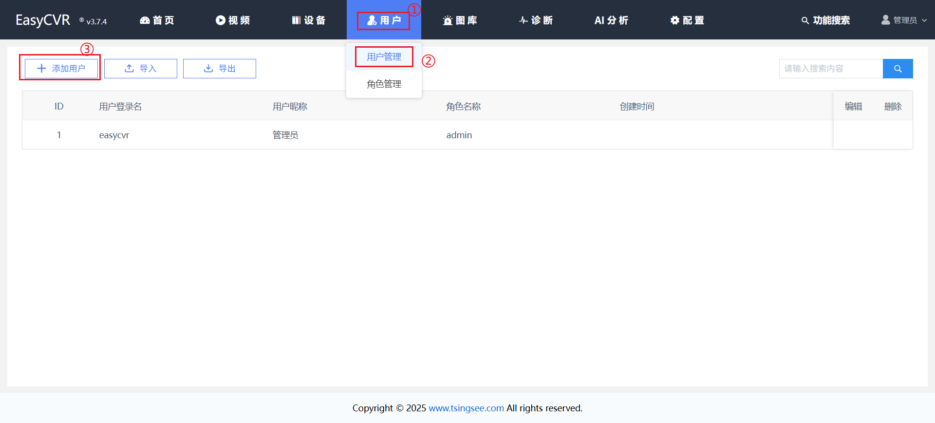 默认初始管理员用户名密码为 easycvr/easycvr,登录成功如下图: