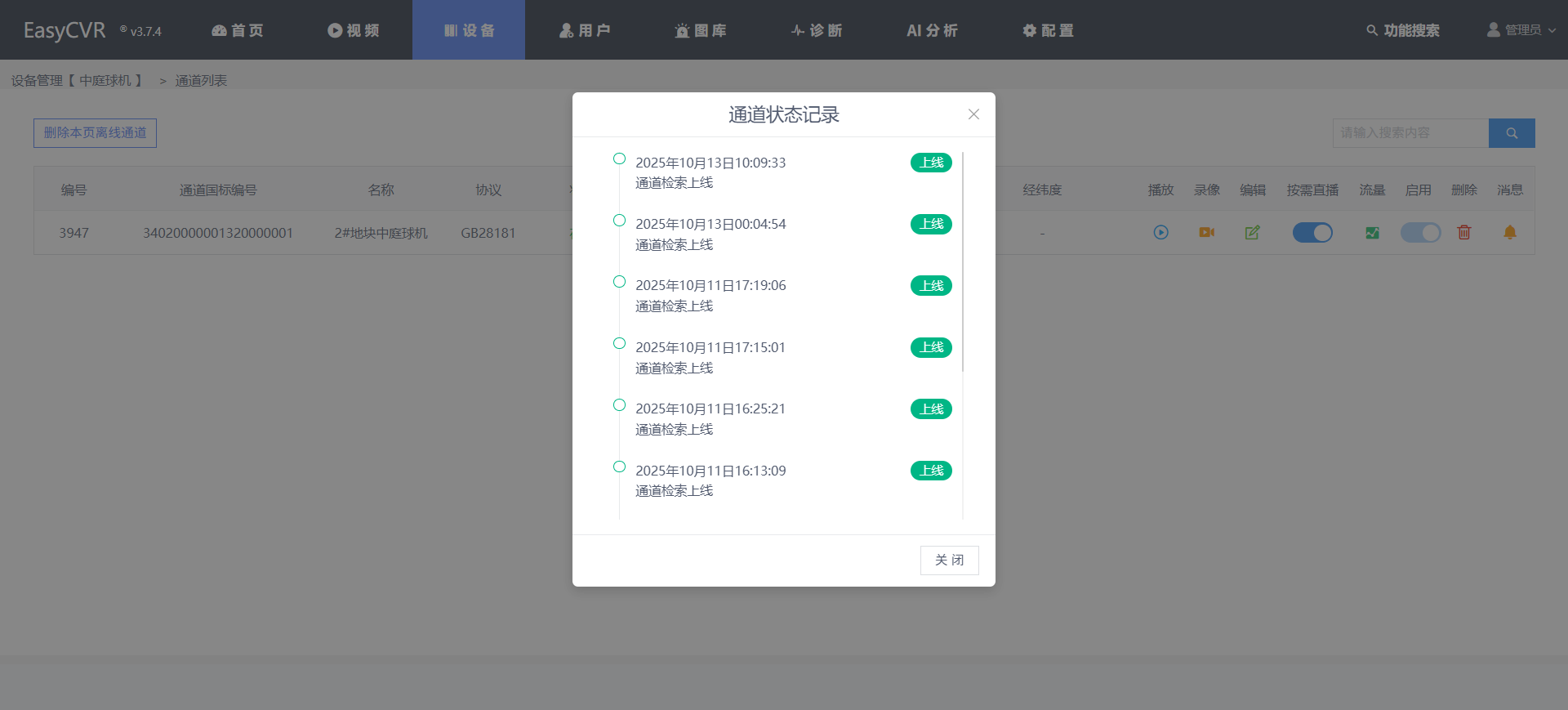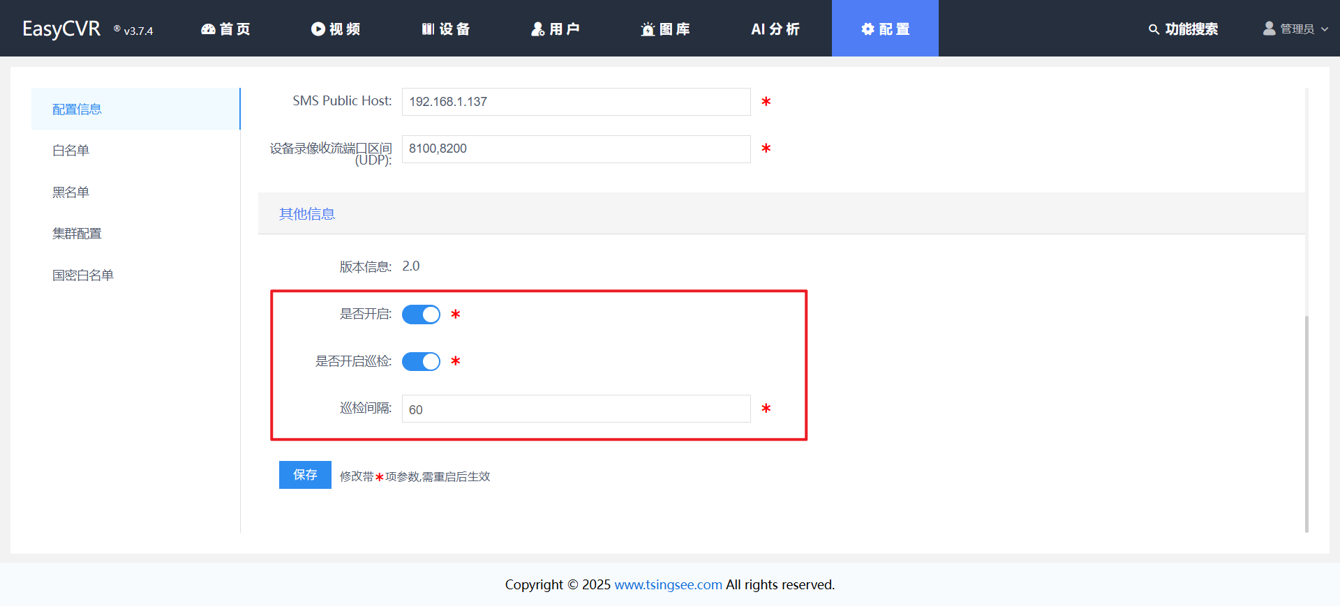 8)设备定时监测:开启后可监测设备在离线状态(针对 SDK/RTSP 接入)。
