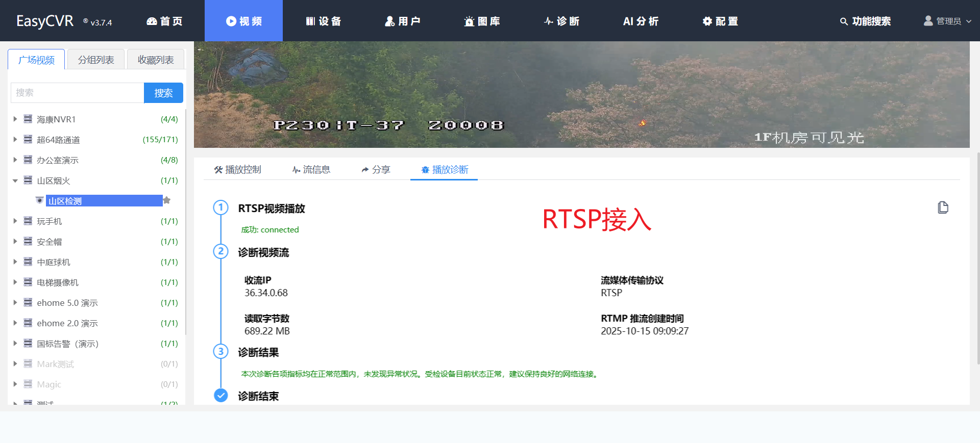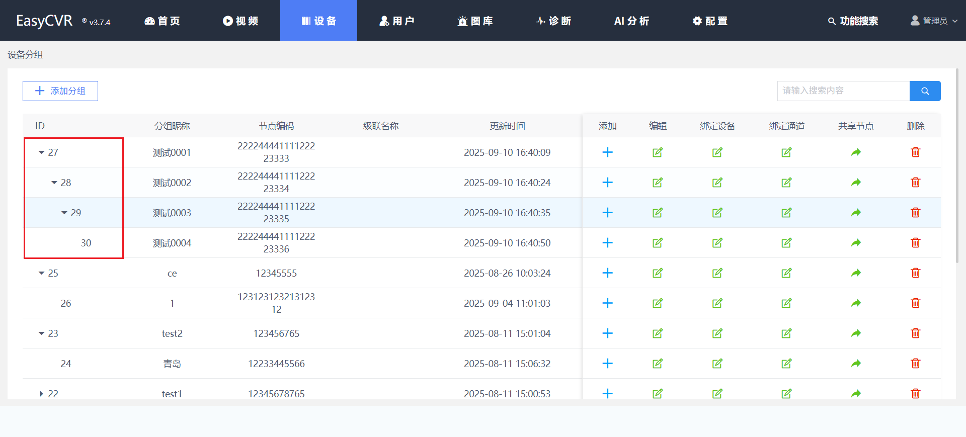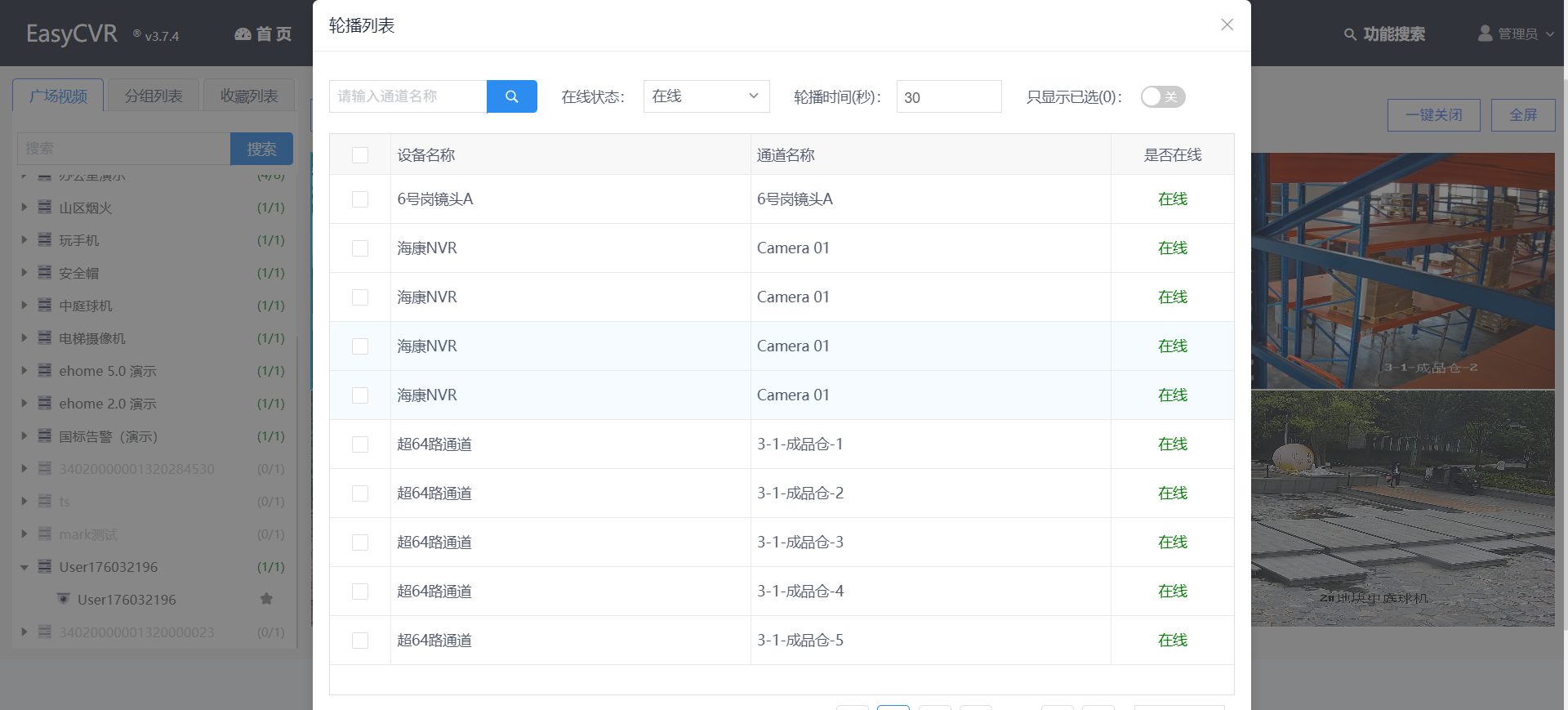 3)接下来,在上级平台查看是否接入成功以及是否可以播放(下级平台的 SIP 认证用户=上级平台的设备编号)。