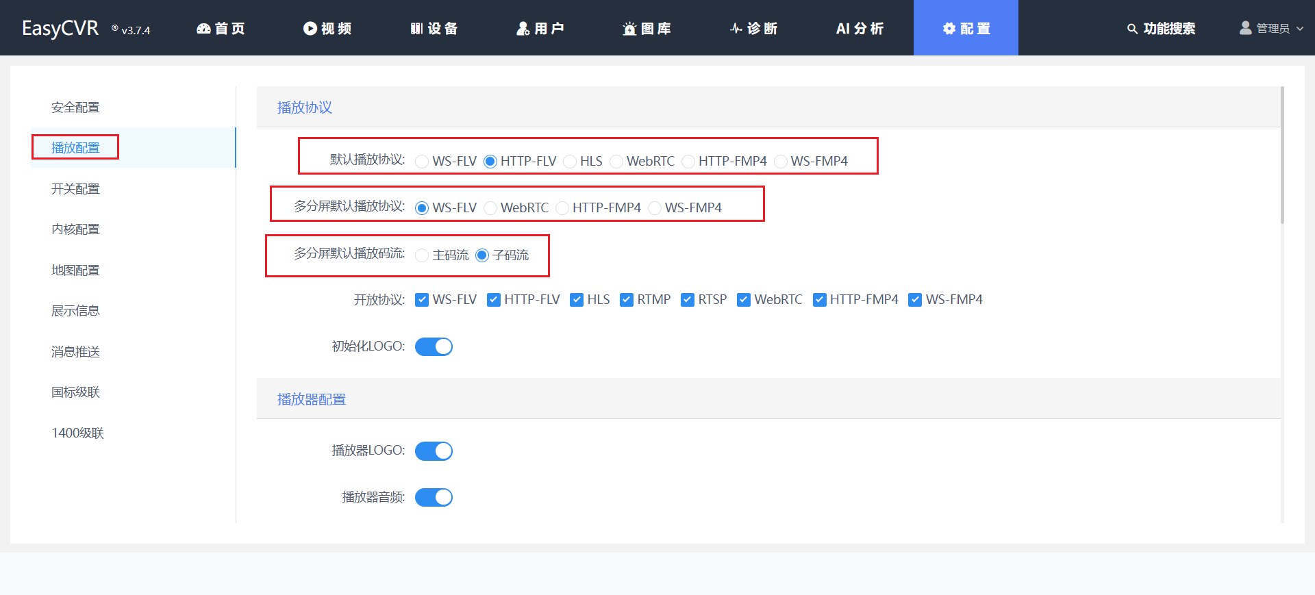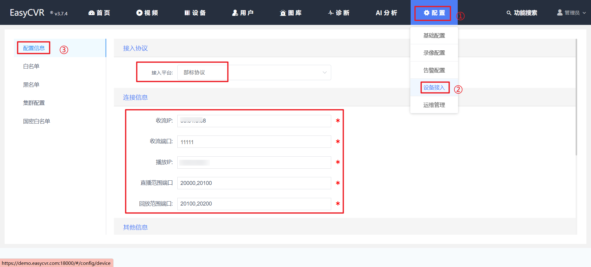 在配置页面里,用户可以根据实际接入情况进行选择: