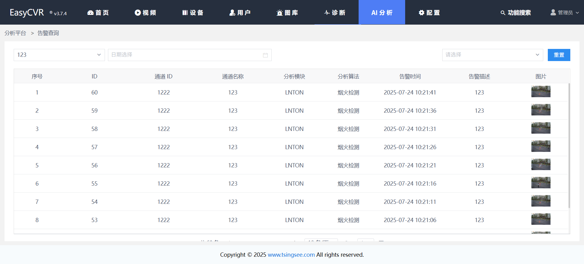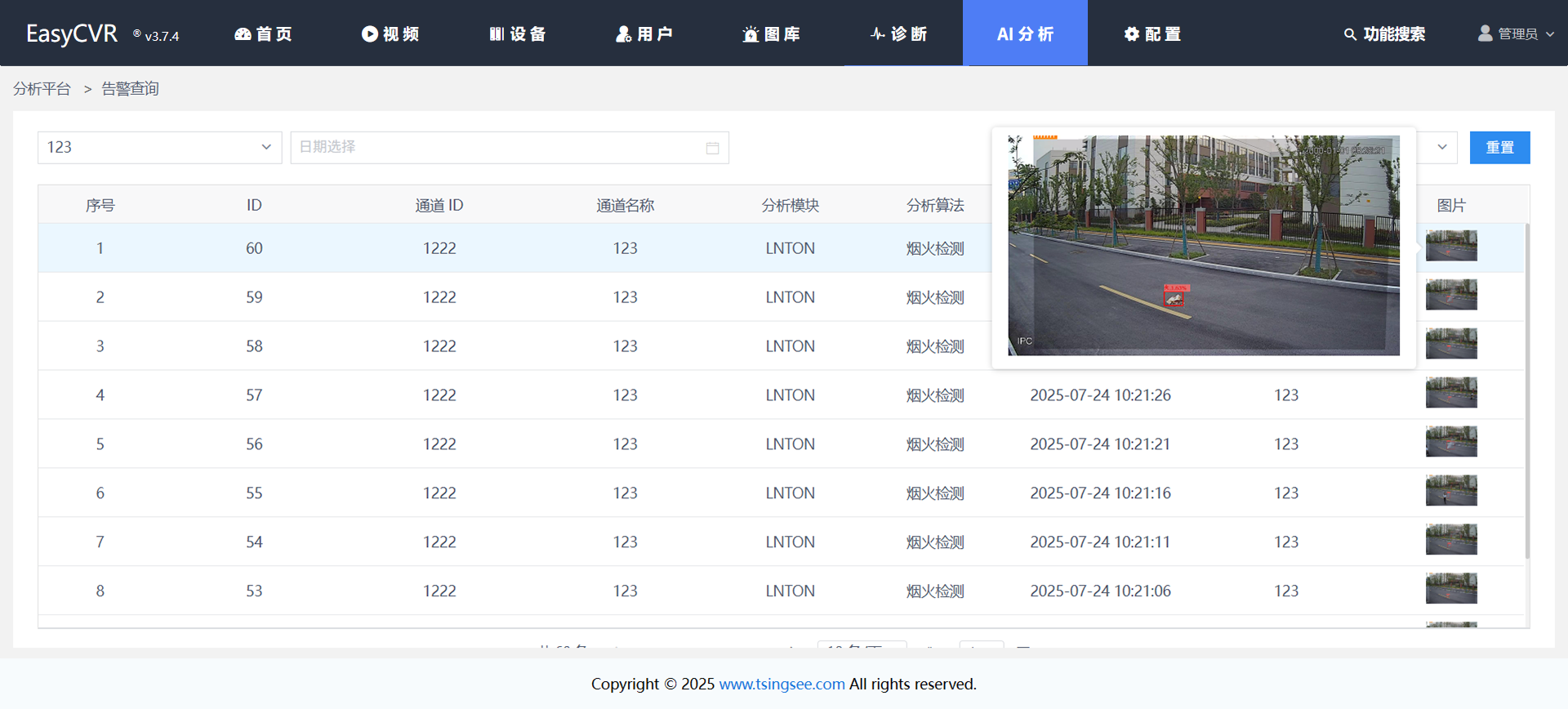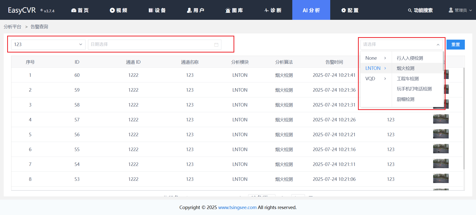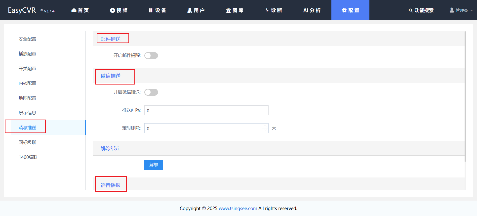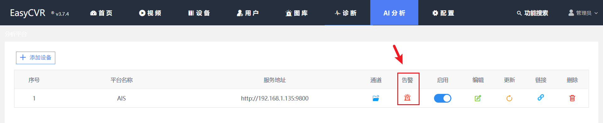 开启后,若有 AI 告警,则平台会自动语音播报。
