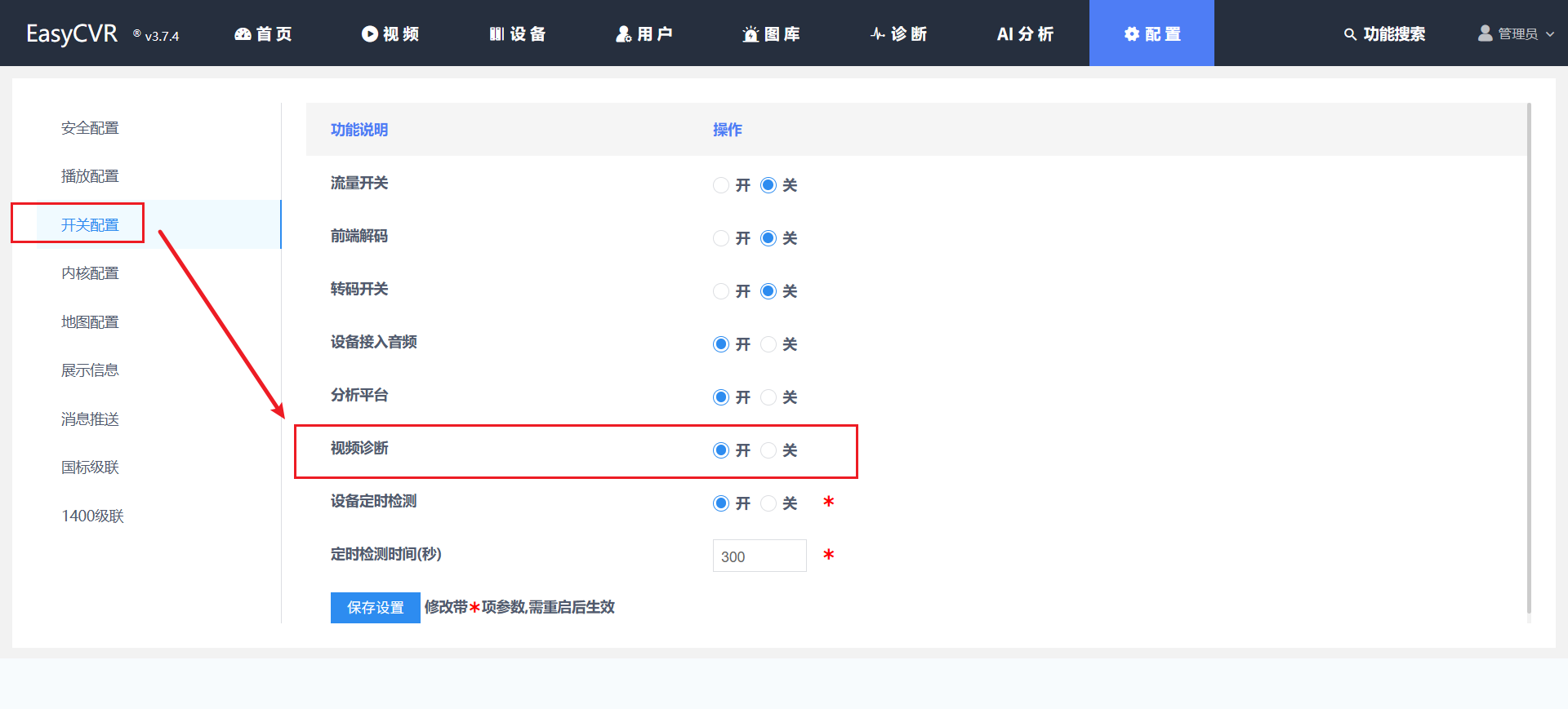 6)视频诊断:关闭后,导航不展示诊断功能。