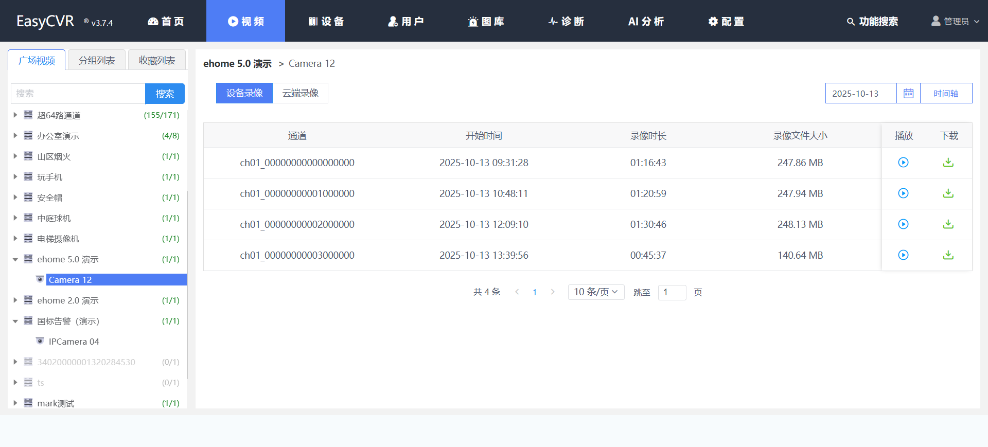 4)支持将录像(云端录像/设备端录像)推送给上级平台。