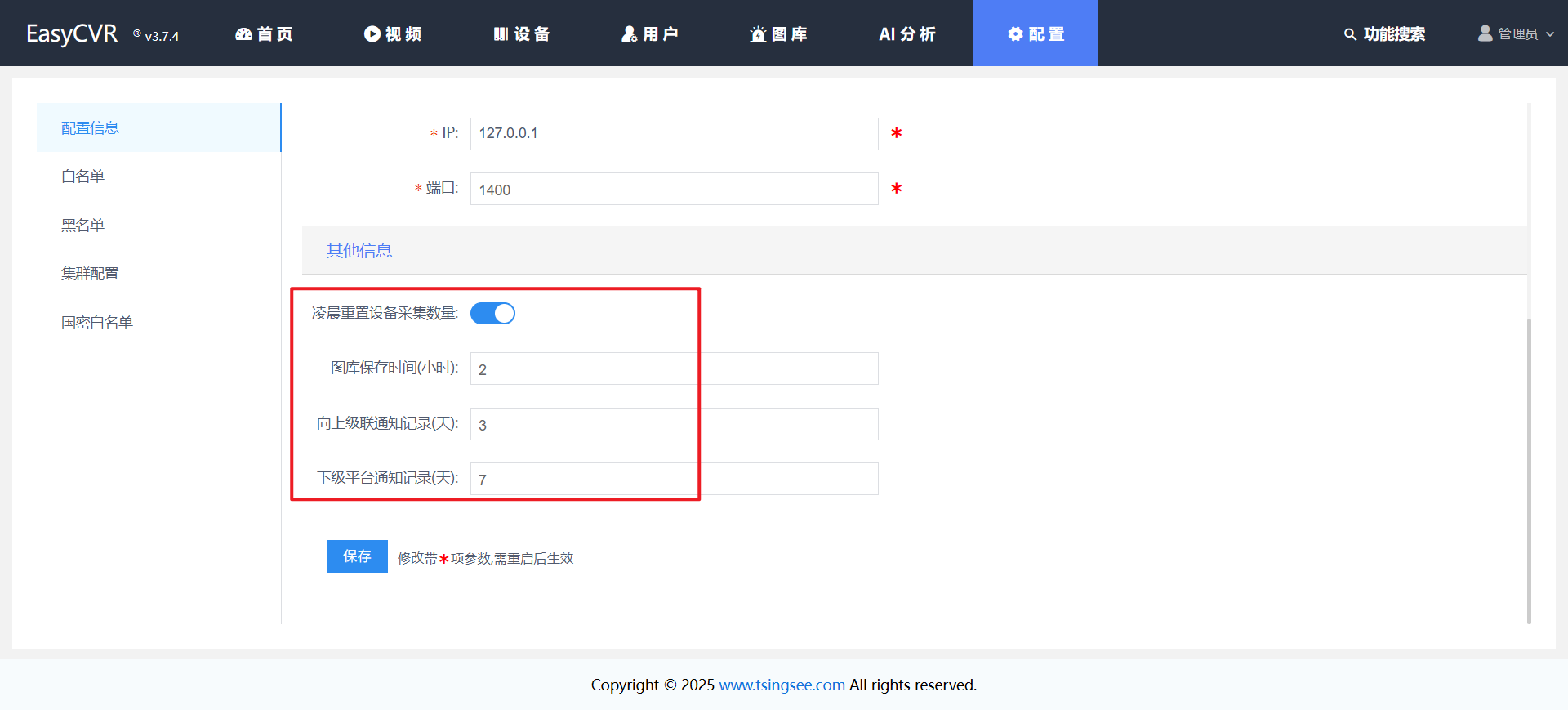 回调域名填写当前页面的 ip:port。推送间隔表示分析结果推送的时间间隔,单位为秒。
