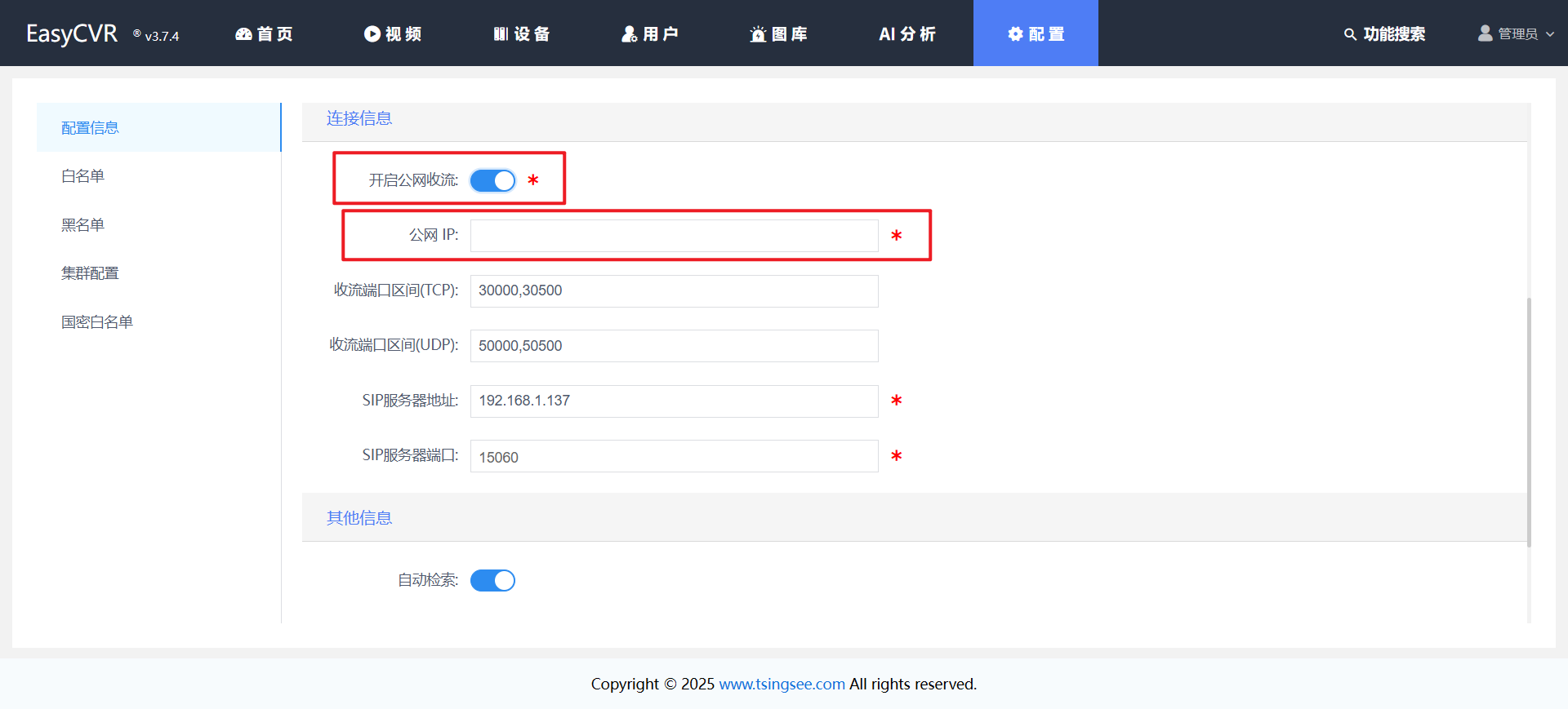 (IP 为部署 EasyCVR 的服务器 IP 地址,可根据实际情况自行修改 IP 地址)