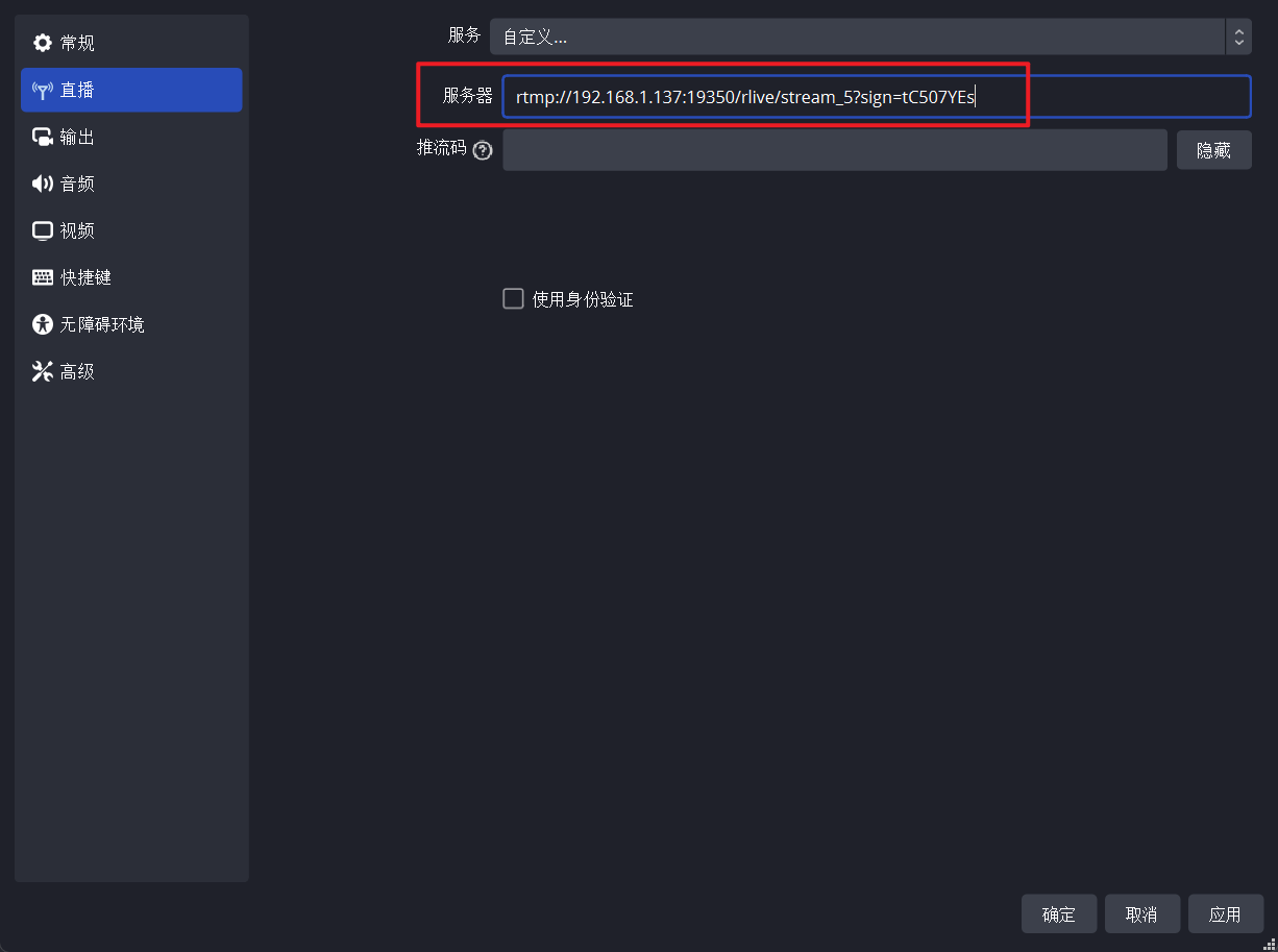 RTMP 配置: 包括 RTMP 开关与配置 RTMP 收流端口;