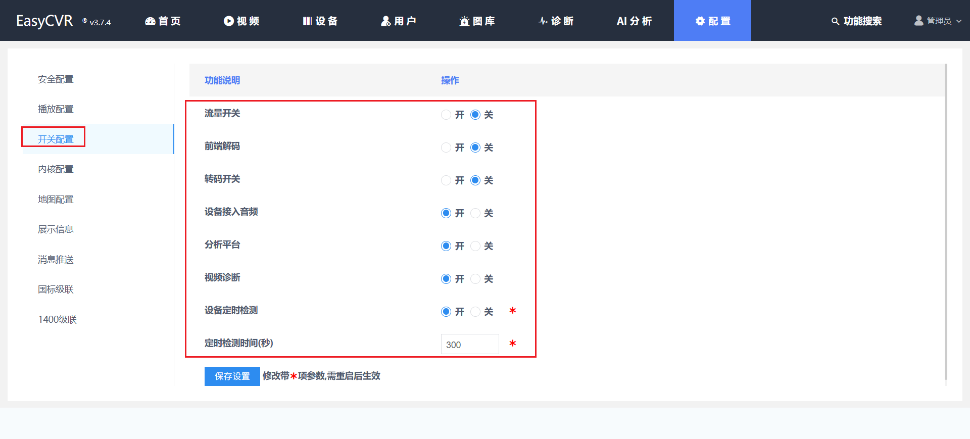 4)设备接入音频开关:配置全局音频是否接入的开关;