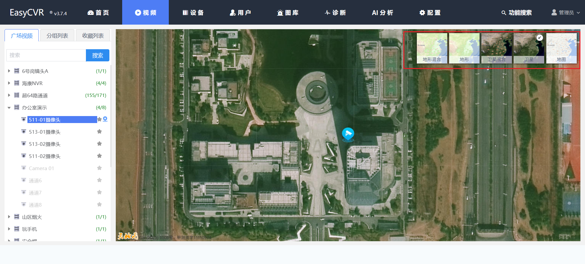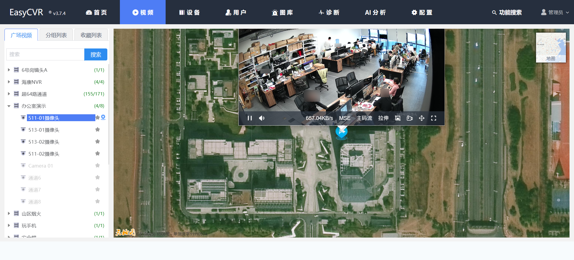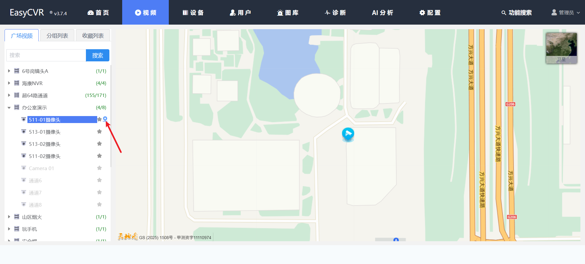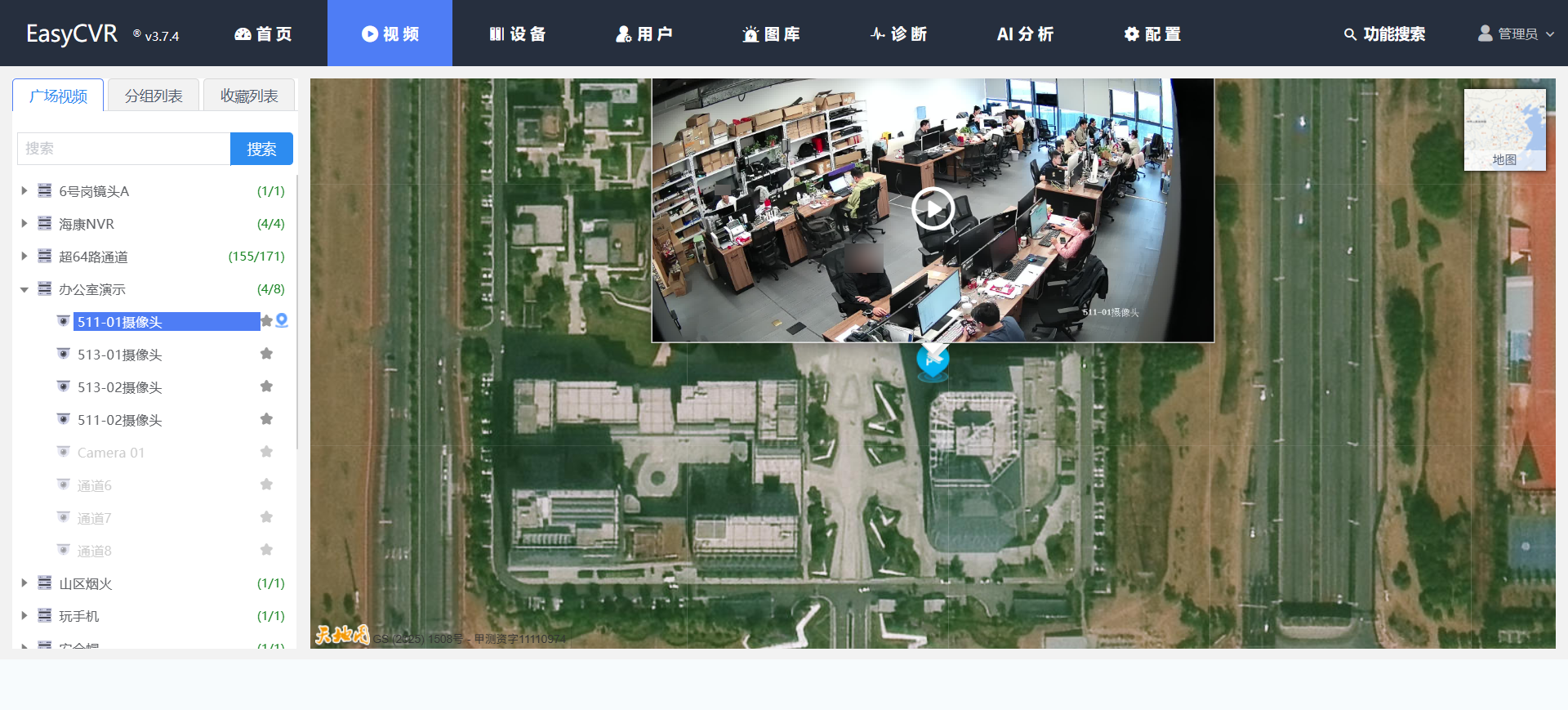 GIS 模式界面如下,可展示摄像头点位分布情况: