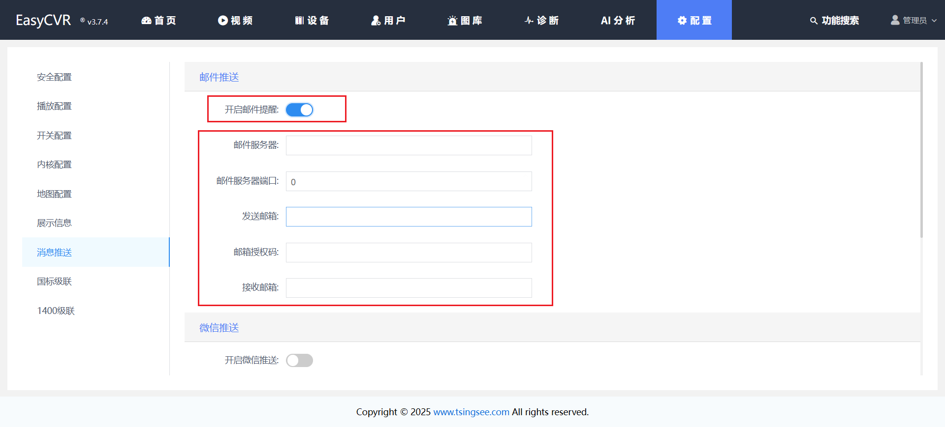 配置完成后,若产生 AI 告警,则自动发送邮件至接收方。