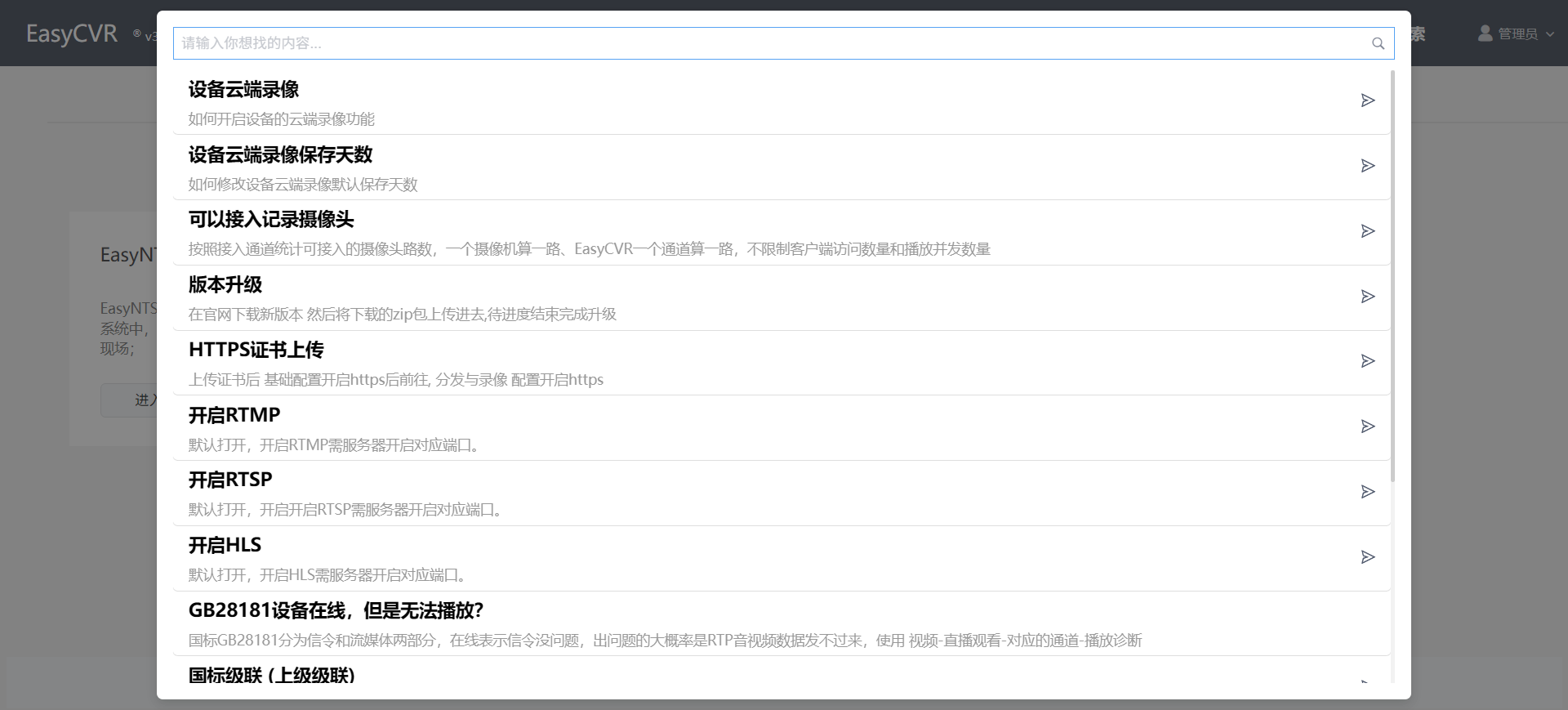 默认初始管理员用户名密码为 easycvr/easycvr,登录成功如下图: