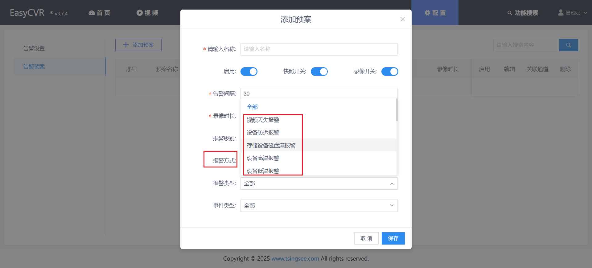 8)设备定时监测:开启后可监测设备在离线状态(针对 SDK/RTSP 接入)。