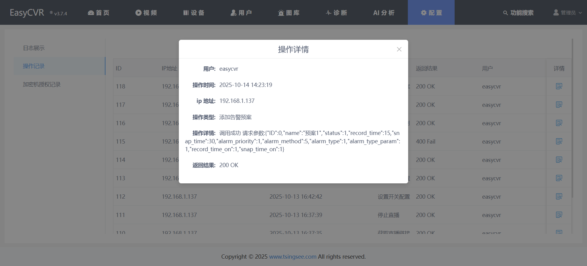 (IP 为部署 EasyCVR 的服务器 IP 地址,可根据实际情况自行修改 IP 地址)