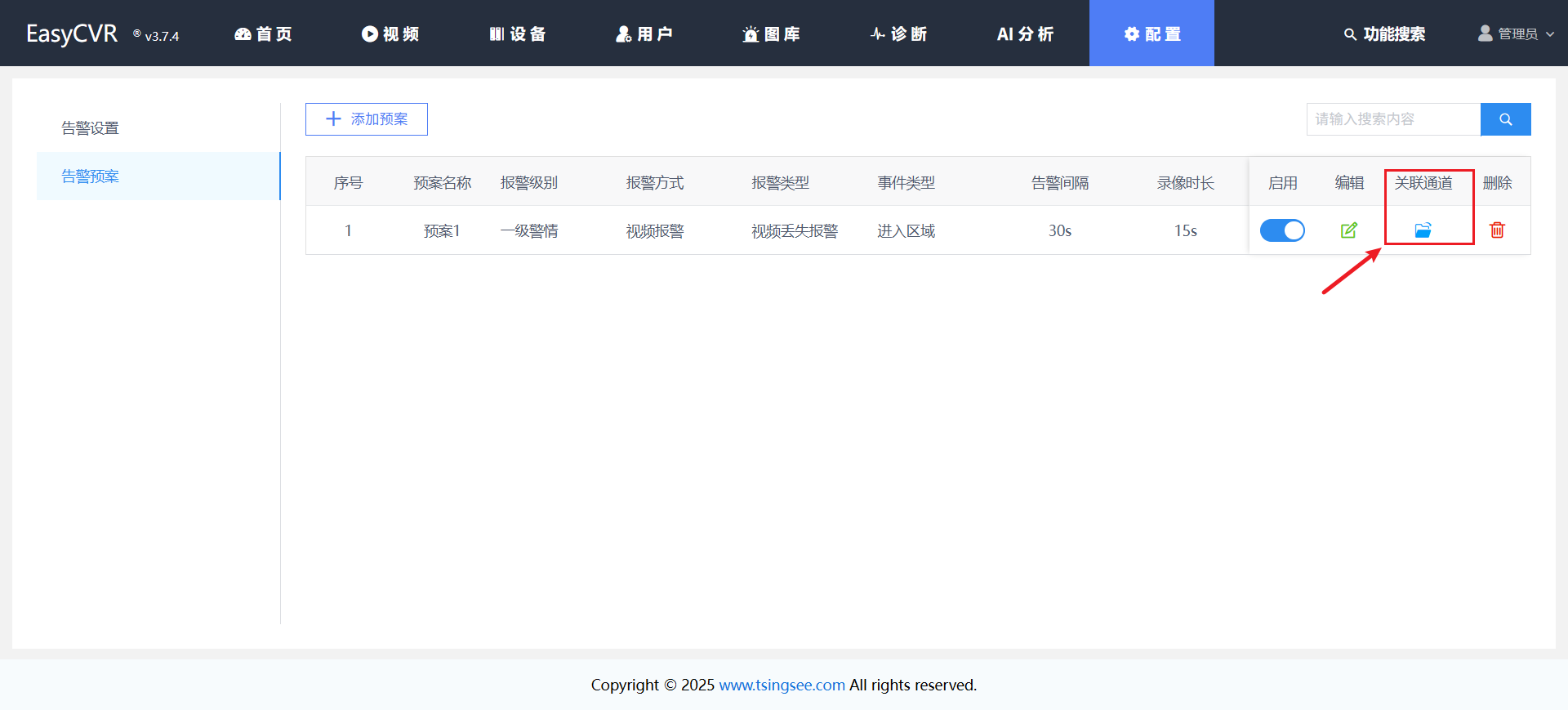 开启后,若有 AI 告警,则平台会自动语音播报。