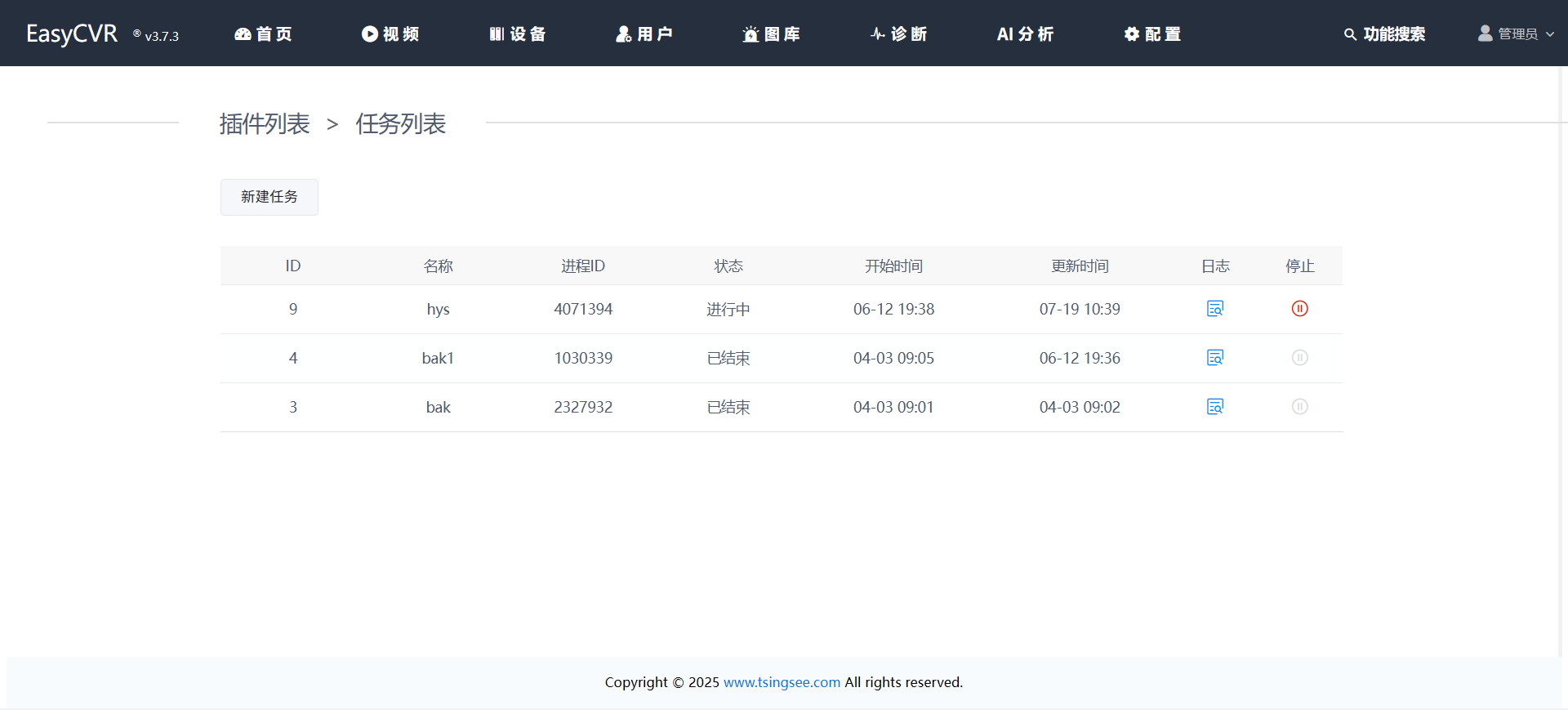 - 卸载/停止:双 击 EasyCVR-uninstall.bat